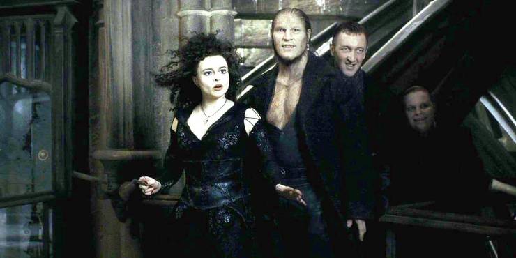 På samme måde kaster Harry Cruciatus-forbandelsen med succes på en Dødsgardist ved navn Carrow, efter at han har fornærmet Minerva McGonagall ved at spytte på hende.