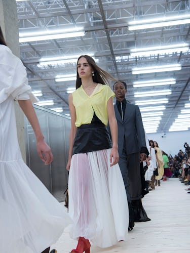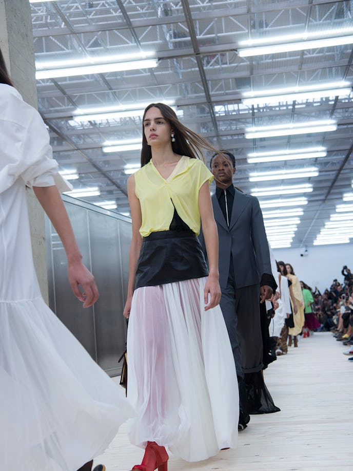 In passerella alla sfilata Celine SS19 durante la settimana della moda di Parigi venerdì 28 settembre 2018. Fotografia di Mich Cardin per W Magazine.