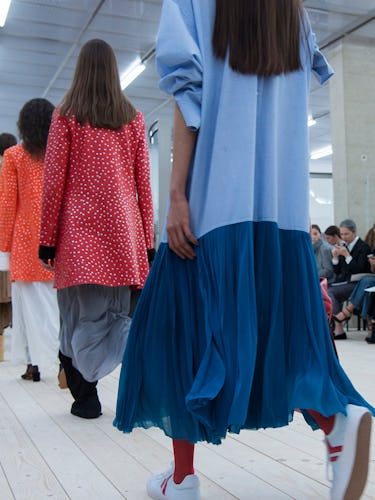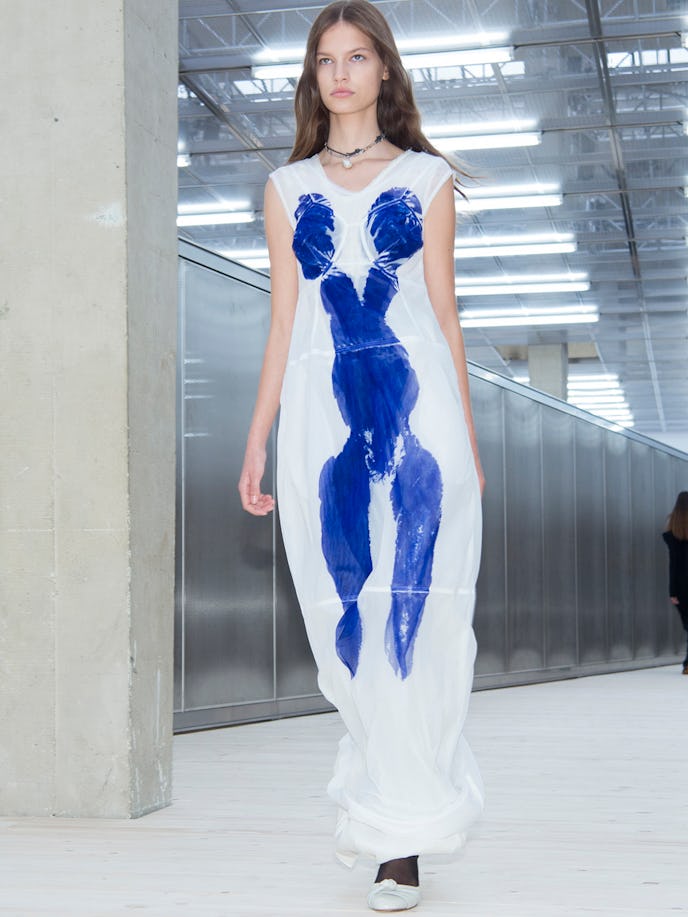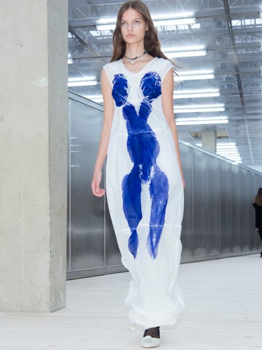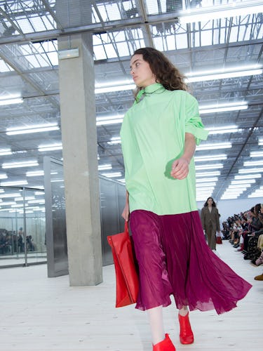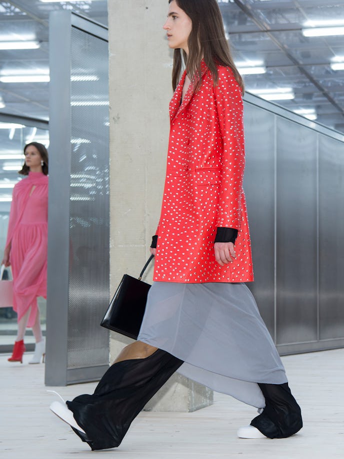 Nel corso del suo mandato – che una parte del settore ha celebrato subito dopo la sfilata di Slimane, con un codice di abbigliamento che recitava “rigorosamente Céline, non Celine” – Philo ha anche stabilito una sorta di uniforme, anche se le sue eccentriche e mutevoli interpretazioni di spezzati sartoriali e silhouette svolazzanti erano decisamente lontane da quelle di Slimane. Come ha detto a W nel 2011, oltre alla cultura di strada e alla praticità, ha anche trovato “l’abbigliamento maschile e il fatto che gli uomini di solito hanno un’uniforme fissa molto stimolante: c’è qualcosa di liberatorio nel non avere troppe scelte. Forse è qualcosa a cui le donne rispondono nel mio lavoro”. Non importa che sia passato più di un anno da quando ha fatto uscire nuovi disegni: Chiaramente non hanno smesso di rispondere da allora.