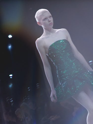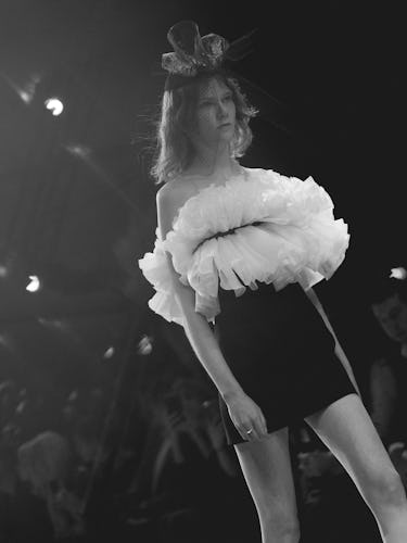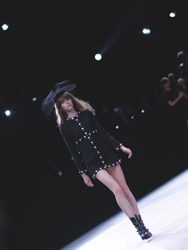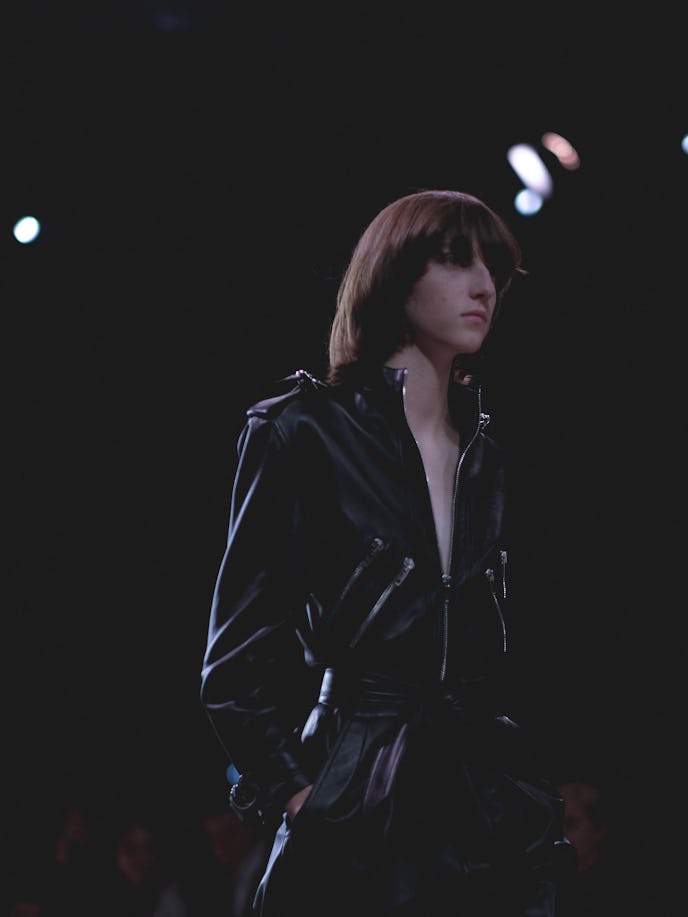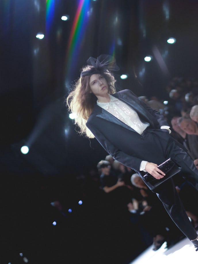 Sulla passerella alla sfilata Celine SS19 durante la Settimana della Moda di Parigi venerdì 28 settembre 2018. Fotografia di Mich Cardin per W Magazine.