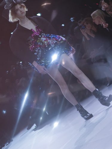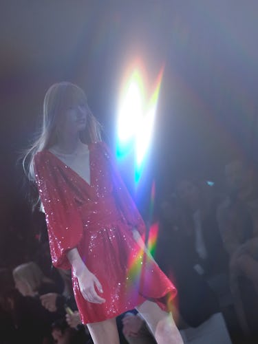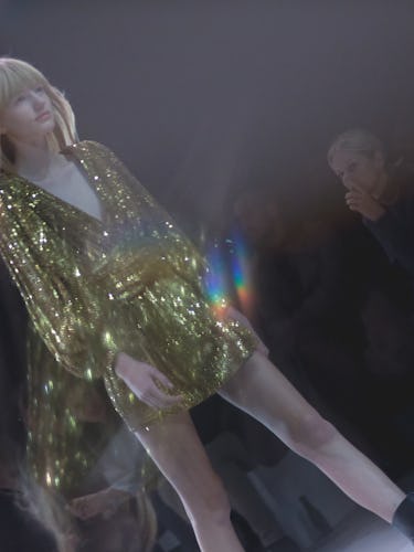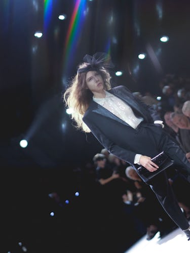Sulla passerella alla sfilata Celine SS19 durante la Settimana della Moda di Parigi venerdì 28 settembre 2018. Photograph by Mich Cardin for W Magazine.
