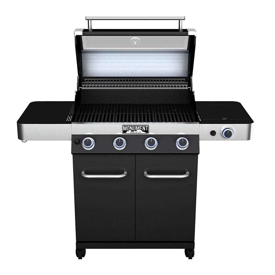 Monument Laneのステンレスグリルはクリーンで輝く金属パッケージを提供します。 プロパンタンクは収納扉に収められています。 グリルの裏側には、磁器でコーティングされたグリスパンがあり、簡単に引き出せます。 両側にはフックがあり、掃除用具と調理器具を分けて収納することができます。 500ドル以下の他のガスグリルとは異なり、このモデルは4つのロック付き車輪を持っています。 それはまた、複雑なDIYの組み立ての時代にしばしば見過ごされる資産、組み立てるのは簡単です。 4つのメインバーナー、サイドバーナー、セラミックバーニングがあります。 操作ノブには、夜間のグリル用にLEDライトが装備されているのも気が利いています。 メイングリルは磁器質でコーティングされた鋳鉄製で、500平方インチの直接調理エリアがあります。 間接調理用のラックもあります(よくウォーミングラックと呼ばれますが、そこにあるものでも調理は可能です)。 点火は簡単で、パイロットなしのプッシュボタンです。